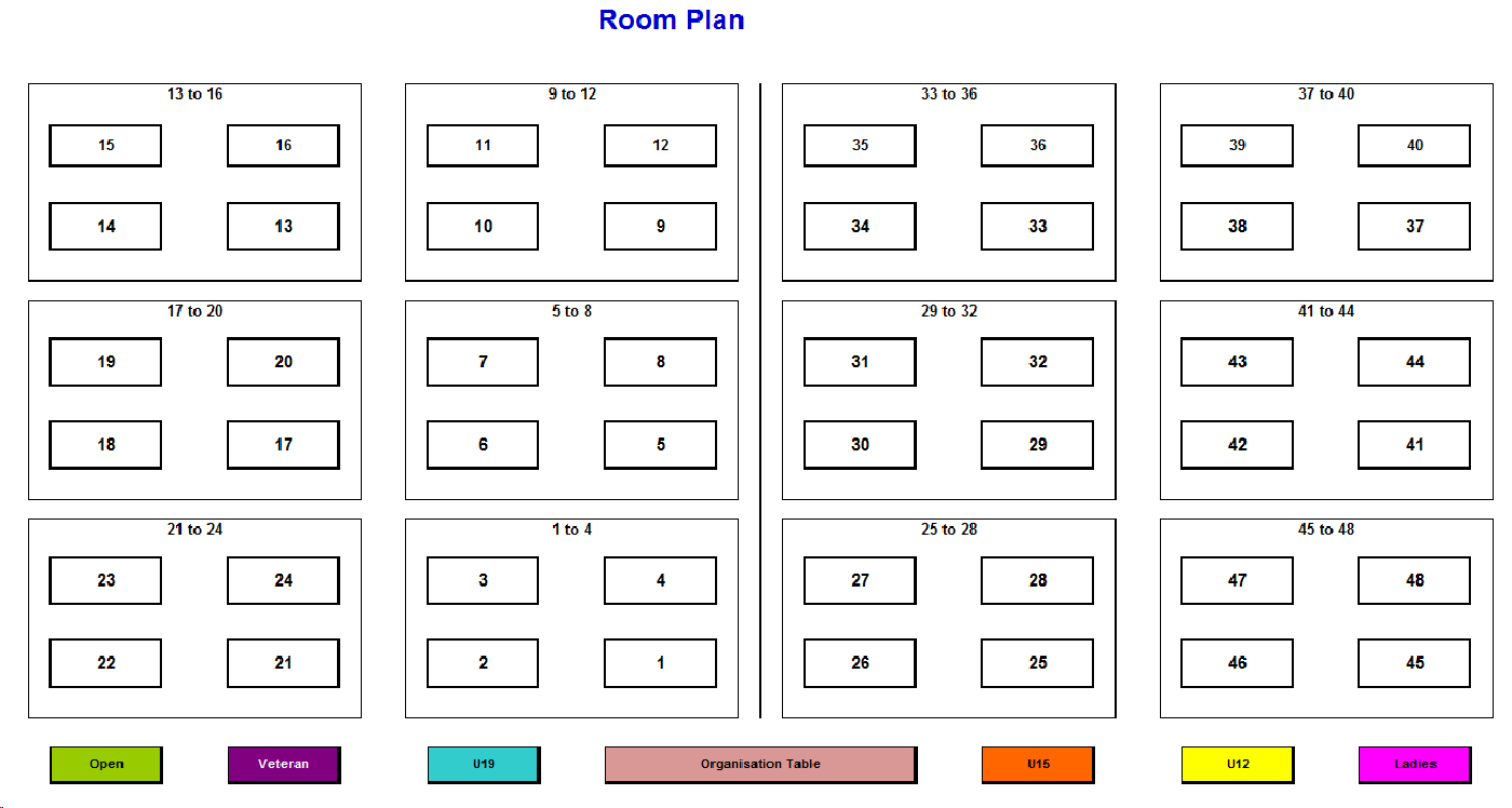 Below is presented the organisation of the tables in the competition hall.
