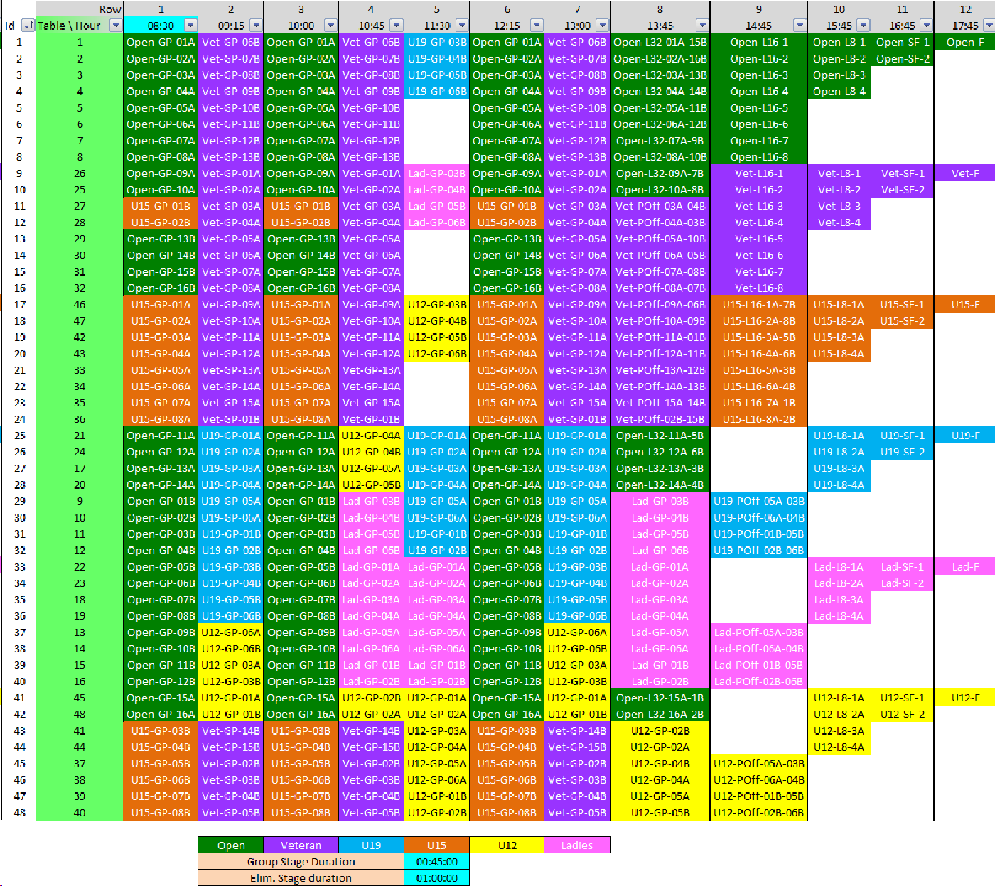 The matches are localized considering that players must play as many time as possible on the same table.